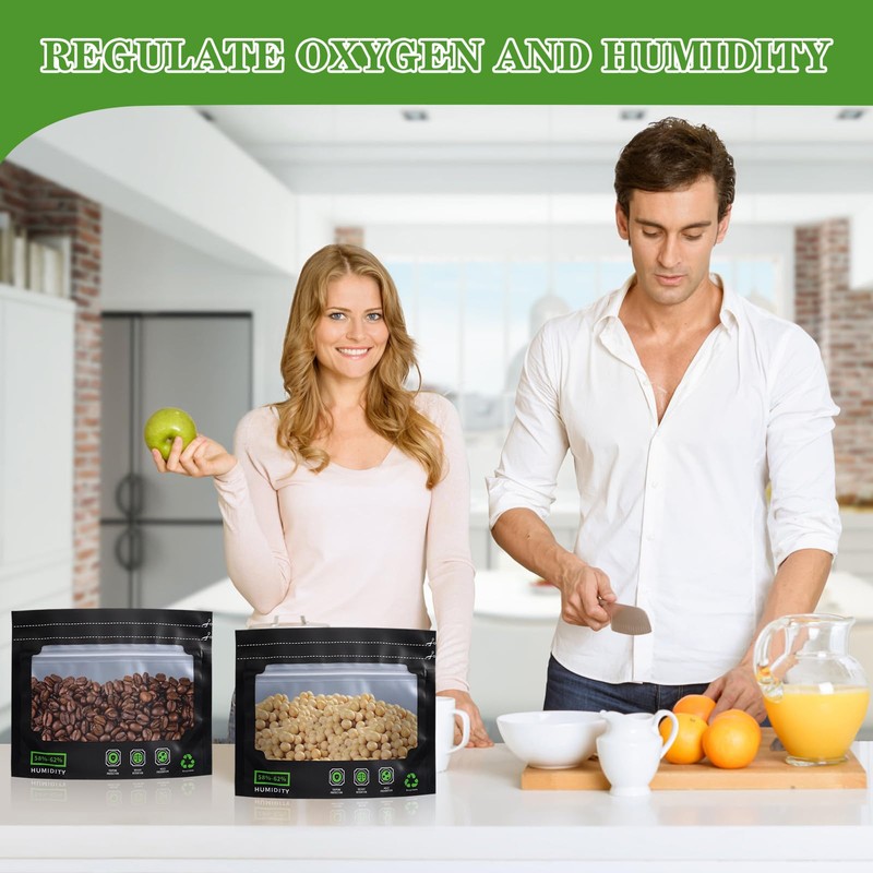 - Moisture control: 58-62% moisture-controlled waterproof food bags that not only precisely lock the moisture of the food, but also effectively delay the loss of food ingredients in combination with odour isolation technology. They allow for long-lasting freshness so that each food retains the freshness and integrity it had when packed for as long as possible