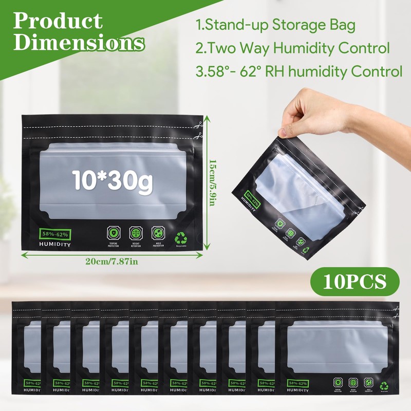 Terploc Grove Bags, Reusable Storage Bags, Airtight Storage Bags, Oxygen and Moisture Regulating with Integrated Moisture Control (58-62%) Pack of 10 for 30 g