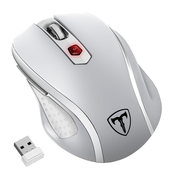 TERPORT F20 Mouse Inalámbrico, Ratón Game Ergonómico de 2.4G para Computadora con 5 Niveles de DPI Ajustables, Ratones USB Móviles de 2400DPI de Juegos Computadora Portátil, Compatible con PC (plata)