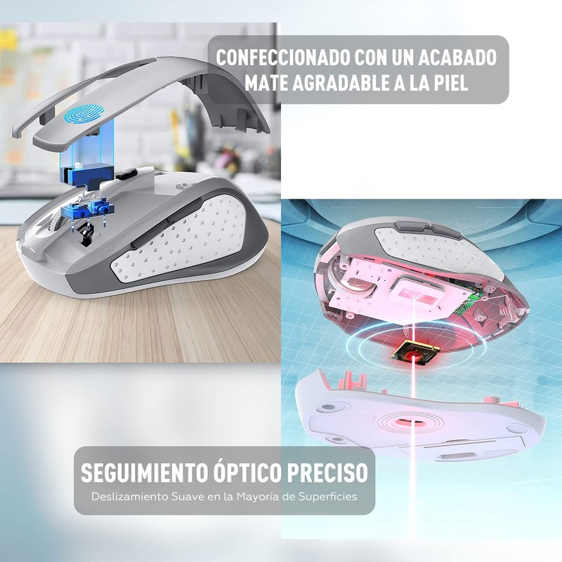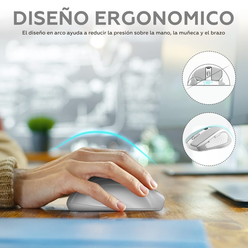 - Diseño Ergonómico: Actualizado diseño ergonómico, el mouse inalámbrico se adapta perfectamente a la posición de cada uno de sus dedos. El diseño de arco aerodinámico sigue la curva natural de su mano, le ayuda a aliviar la fatiga de la muñeca. Este mouse de computadora tiene 6 botones. Los botones laterales, los botones de avance y retroceso lo ayudan a navegar por la web de manera conveniente.