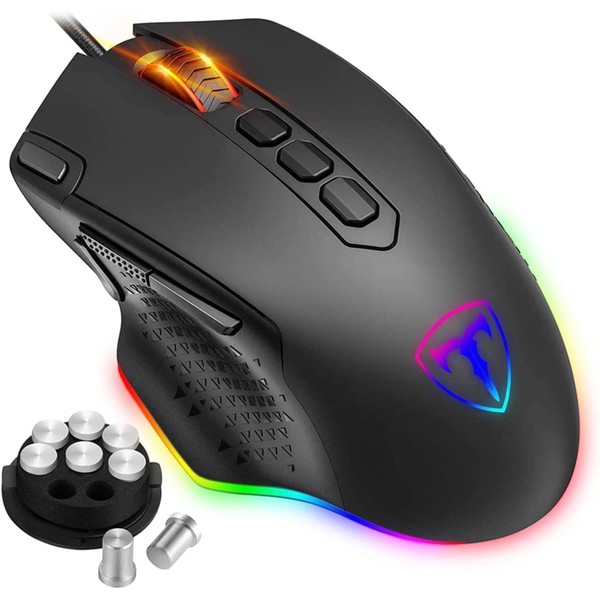 TERPORT S807 Mouse Gaming Ratón para Juegos con Cable, 12000 DPI RGB Ratón Mouse de Juegos, 6 Niveles de dpi Ajustables 10 Botones Programables con Pesas y Estuche Ratón Gamer de computadora