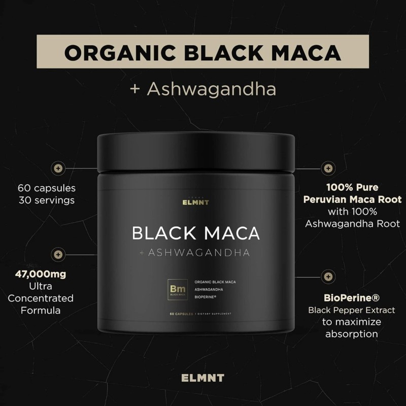 TERRA ELMNT 40,000mg 40x Strength Organic Black Maca Root with Ashwagandha - Highest Potency