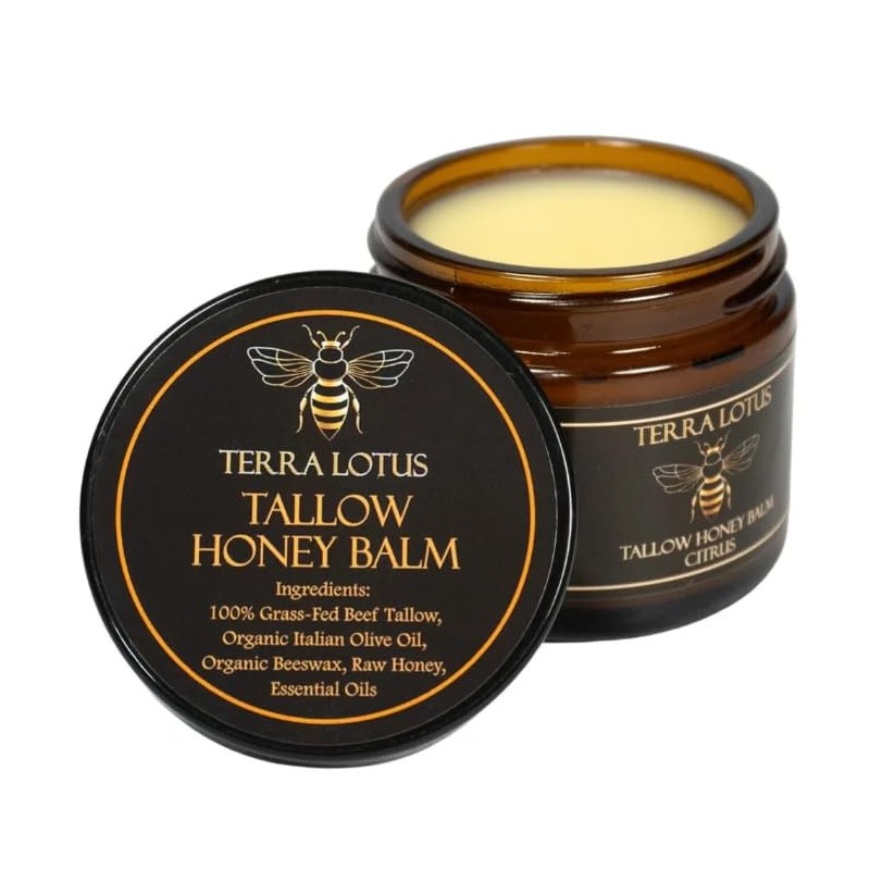 Terra Lotus - Organic Grass-Fed Beef Tallow Balm with Raw Honey - Moisturizing Cream for Soft, Smooth Skin - Handmade All-Natural Moisturizer (2 Oz, Citrus)
