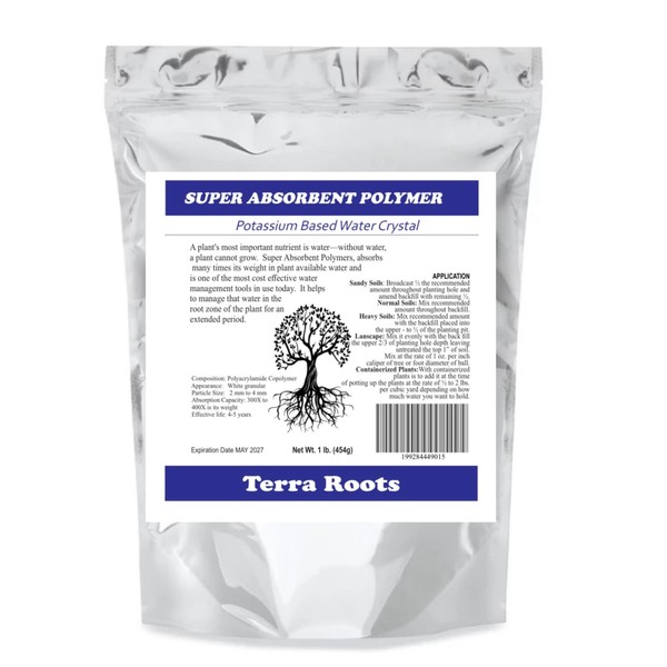 Terra Roots Super Absorbent Polymer, Potassium Based Water Crystal, 1 lb, Plant Water Management