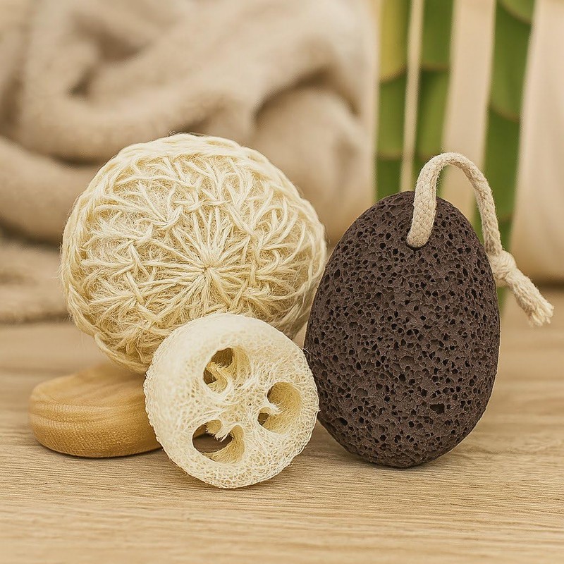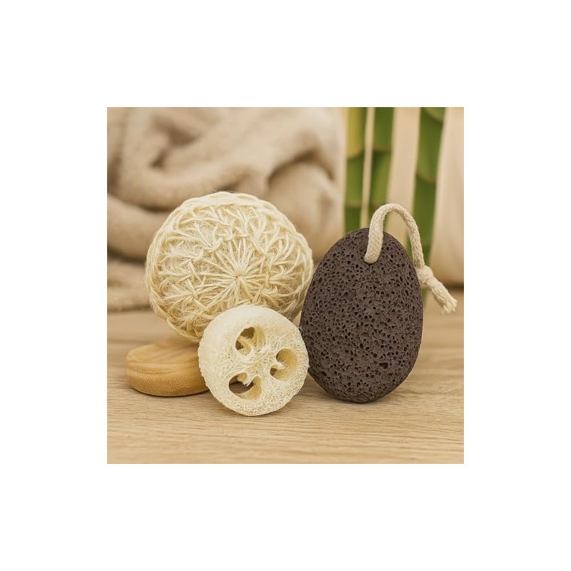 - 1. 100% natural loofah, sisal and pumice stone of natural origin, environmentally friendly and biodegradable.