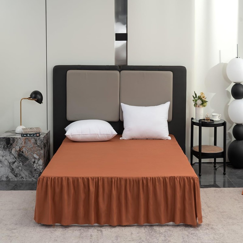 • 【Design】---Brick Red full bed skirt comes with a platform that goes between the maTSTress and box spring to keep it in place, ruffled around 3 sides looking simple and stylish