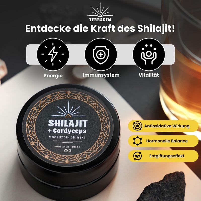 TERRAGEM TERRAGEM Shilajit Altai Mumijo 30g C Natrliches Harz aus dem Altai C 100% ohne Zus?tze C Fulvins?ure & Mineralien C Nahrungserg?nzungsmittel C Vegan C Adaptogen C Energie - Glasdose
