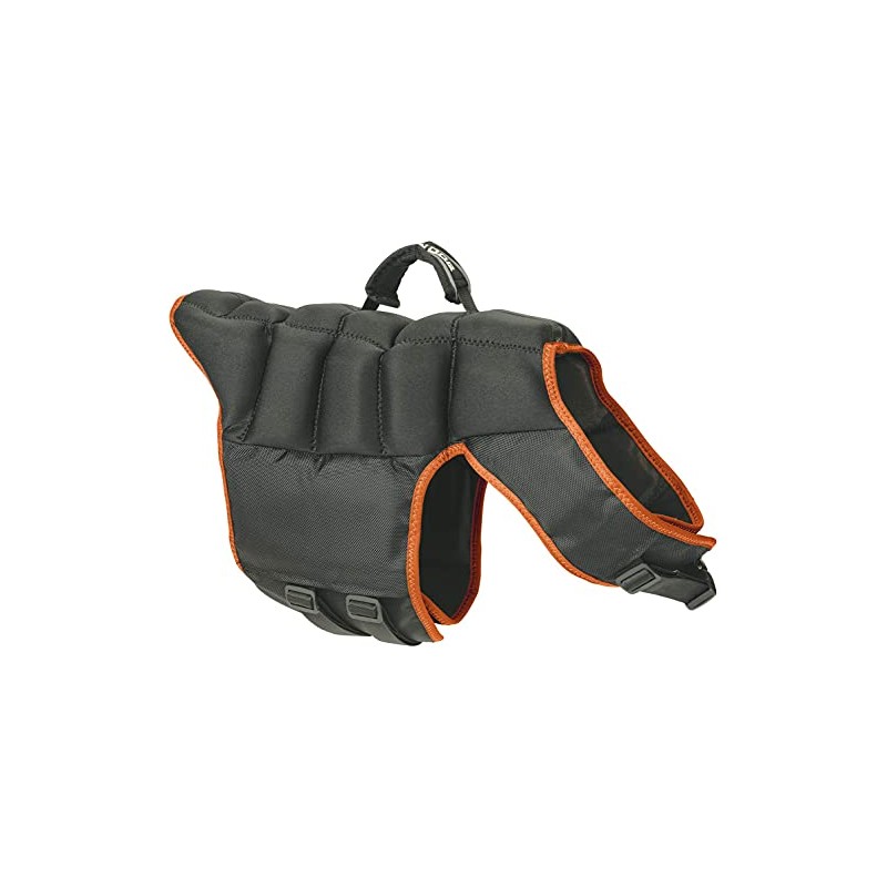 - Slim-fitting canine swim vest features neoprene-filled pockets that offer the perfect combination of buoyancy and flexibility
