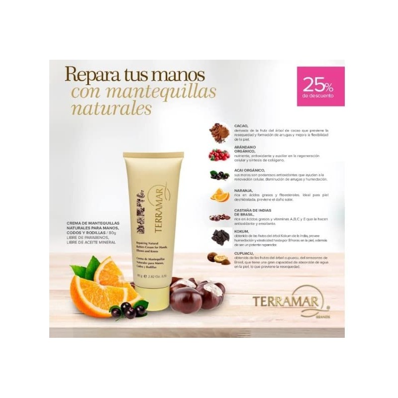 🌟 ⭐ TERRAMAR Crema de manos de Mantequillas Naturales (3 piezas). Ayuda a humectar de forma especial la piel seca de las manos, codos y rodillas gracias a su combinación de sus 7 mantequillas 100% naturales, sin dejar una sensación grasosa ⭐ 🌟