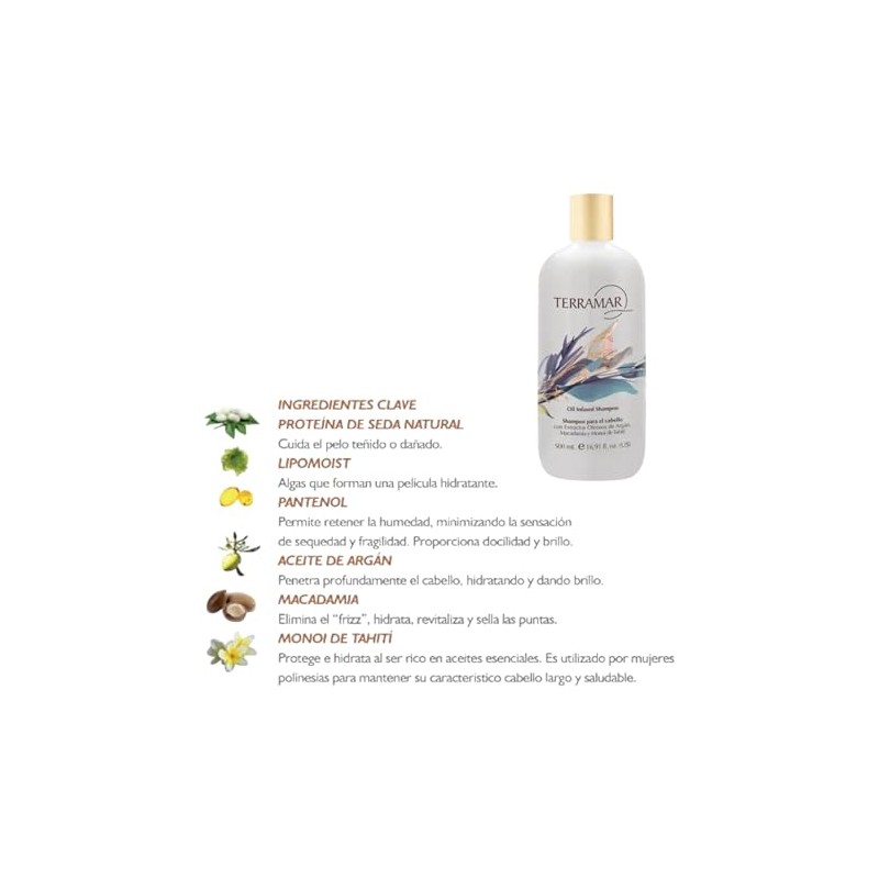 Terramar Shampoo con Aceites de Argán, Macadamia y Monoi de Tahití, 500 ml