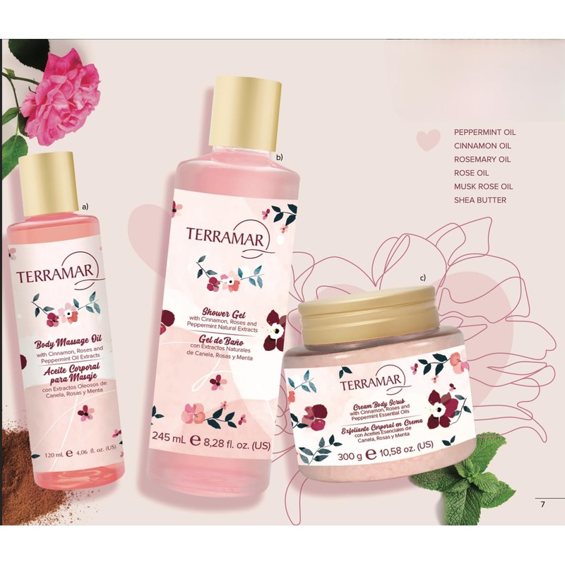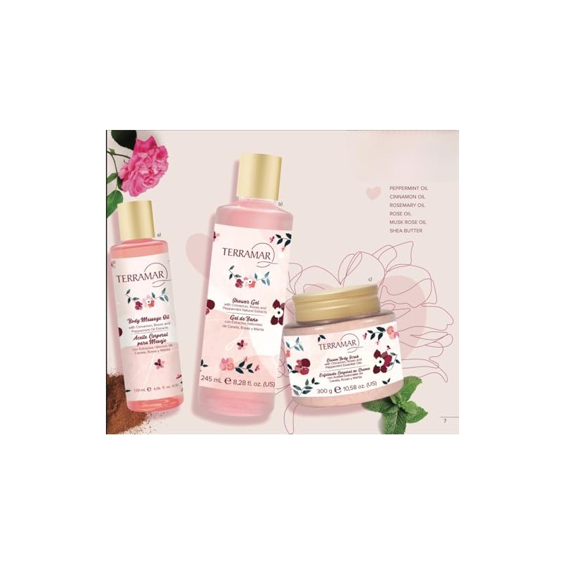 Terramar Shower Gel with Cinnamon, Rose & Peppermint Extracts - Hydrating & Invigorating Body Wash, Gentle Cleansing, Aromatic Experience for Daily Use