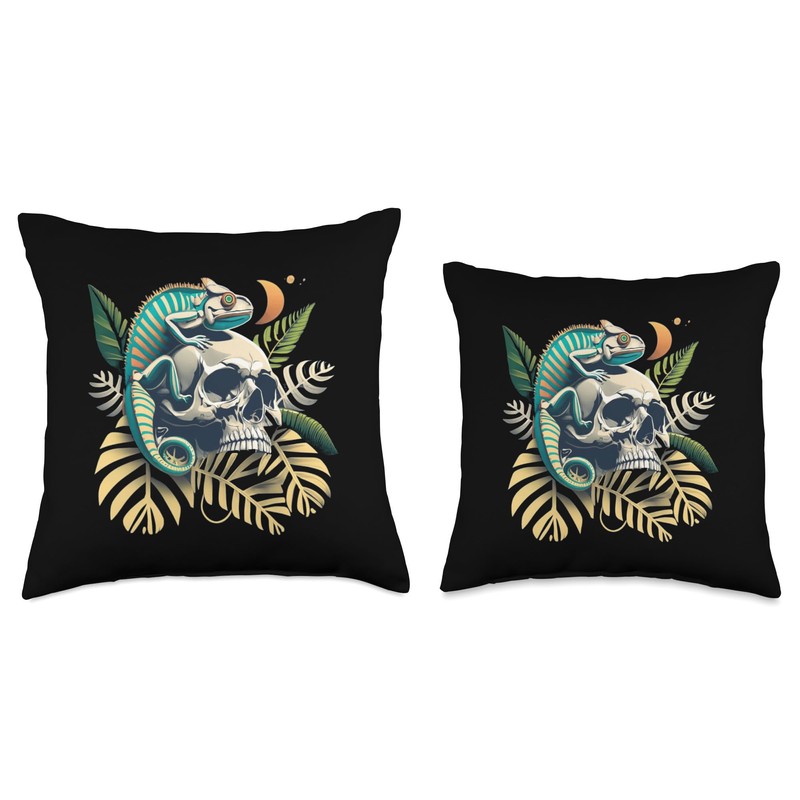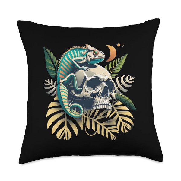 Terrarium Fan Shirts, Reptiles, Invertebrates, Ter Chameleon on Skeleton, Cool Drawing, Ink Art Throw Pillow, 18x18, Multicolor