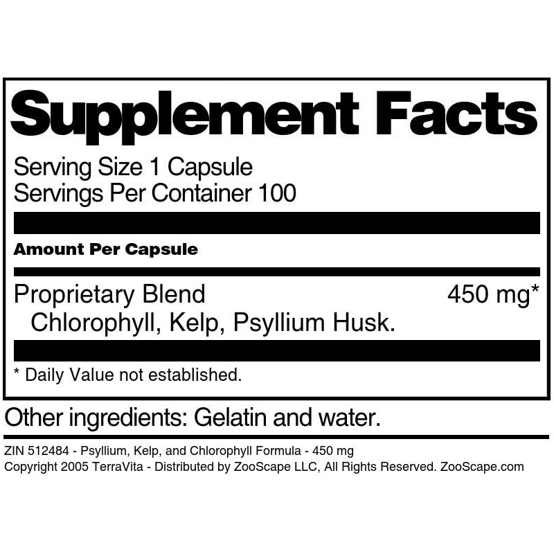 - Psyllium, Kelp, and Chlorophyll Formula - 450 mg (100 capsules, ZIN: 512484)