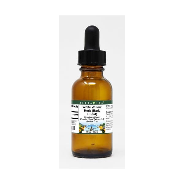 Terravita White Willow Herb (Bark + Leaf) Glycerite Liquid Extract (1:5) - Strawberry Flavored (1 oz, ZIN: 523227)