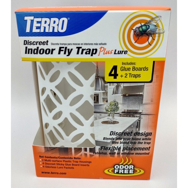 Terro Discreet Indoor Fly Trap Plus Lure Includes 4 Glue Boards 2 Traps Flies