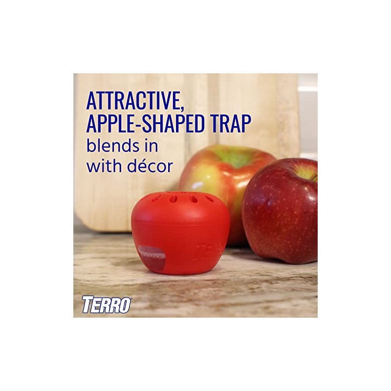 - Discreet Design C The attractive, apple-shaped trap design will look at home in any kitchen. It also blends in with the fruit these pests love