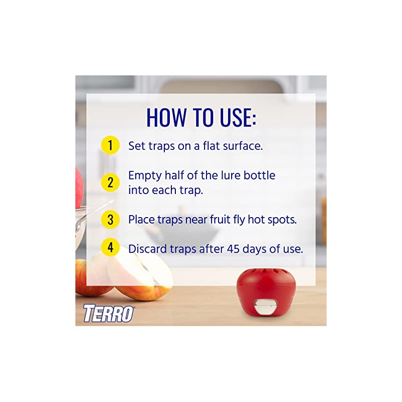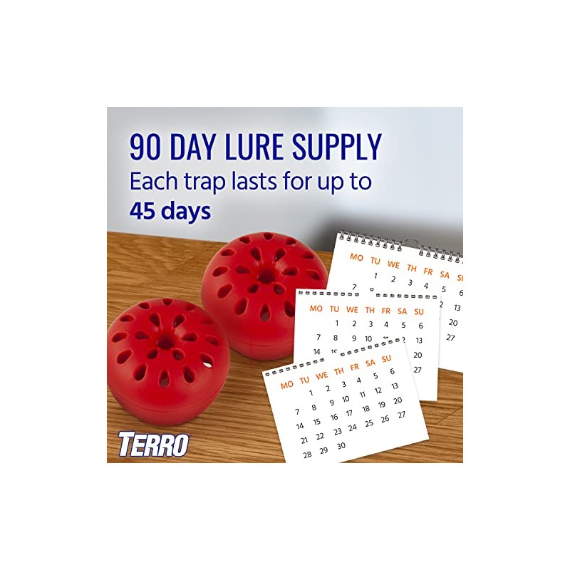 - Long-Lasting Lure C The ready-to-use, non-staining lure attracts adult fruit flies. Each trap lasts up to 45 days, giving you up to 90 days of protection!