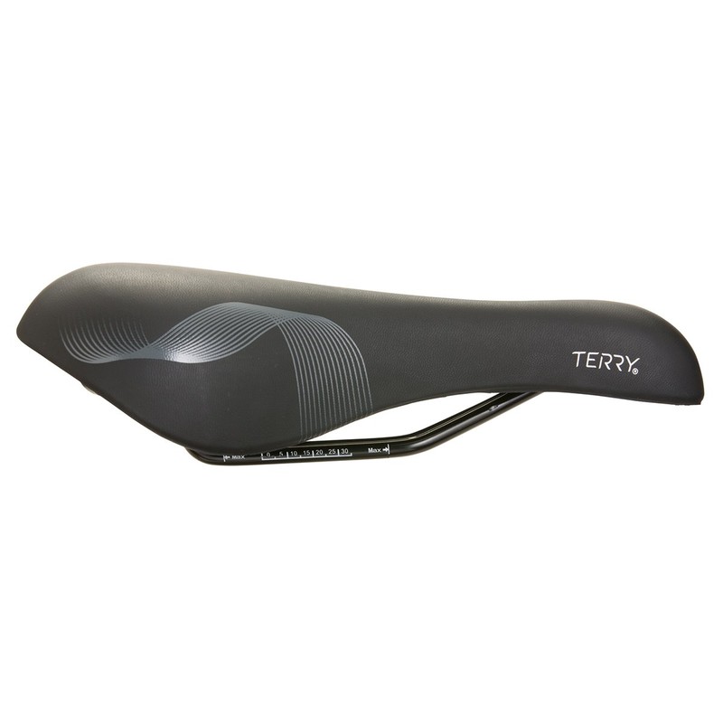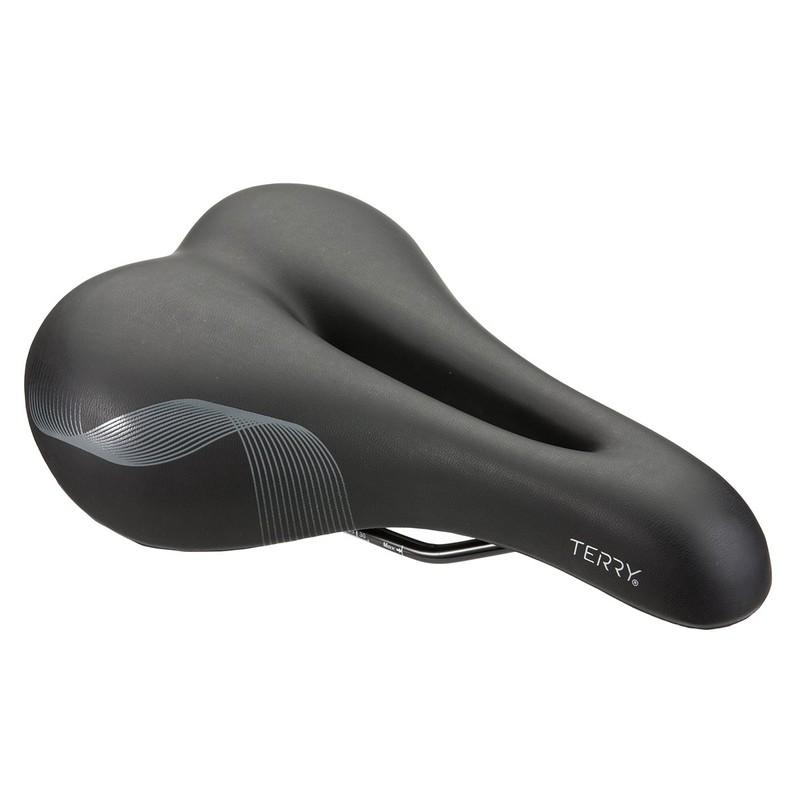 - DESIGN: Lightweight, foam padded saddle with pressure relief; completely cut away through the nose and mid-section to relieve pressure on sensitive tissues; Wider in the rear than other Terry saddles for riders who are in a more upright riding position; Screen-printed graphic treatment; for recreational riders who spend a half day on the bike or less.