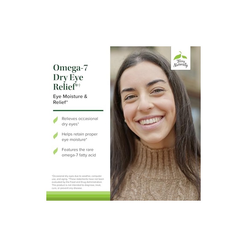Terry Naturally Omega-7 - Alivio de ojos secos - 60 cpsulas blandas - Paquete de 2 - 500 mg de espino amarillo - Suplemento de apoyo a la humedad de
