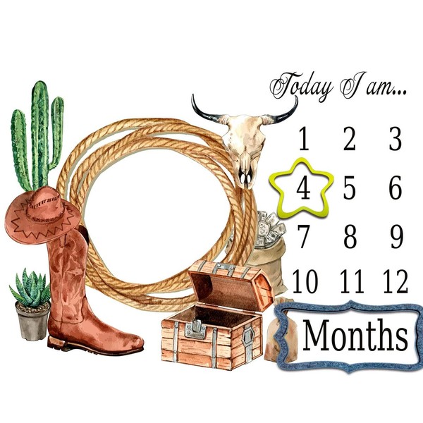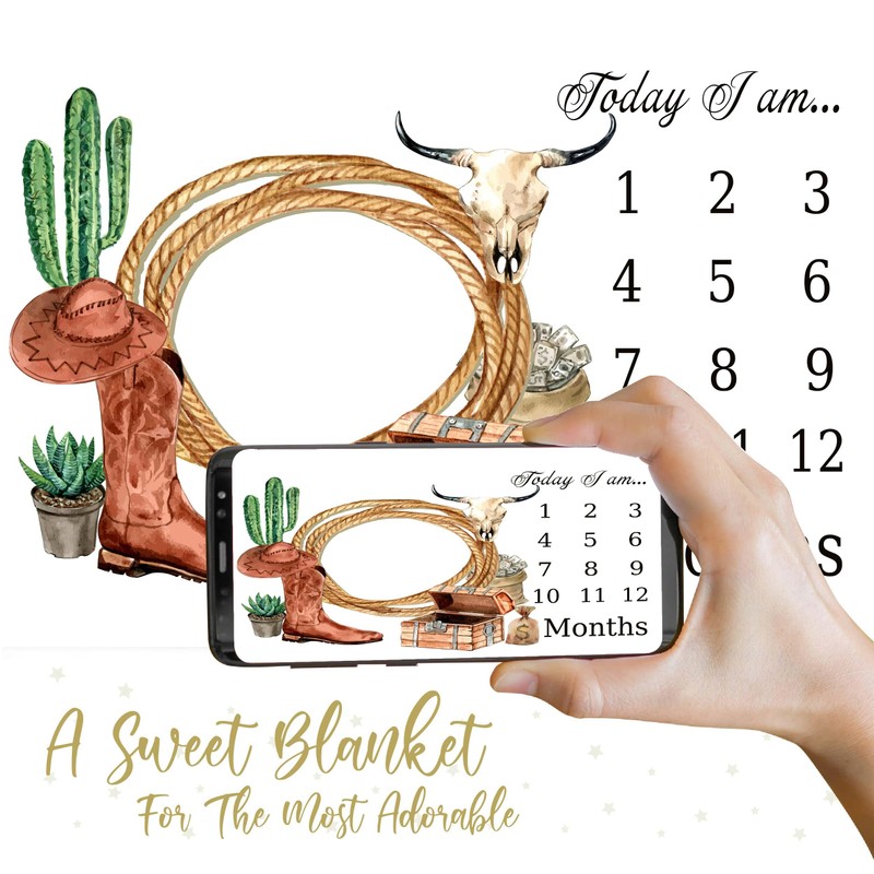 TERSUM Western Cowboy Baby Monthly Milestone Blanket, 48x40in Rope Boots Hat Blanket Soft Flannel Newborn Baby Shower, New Mom Gift Baby Growth Chart Photography Blanket Contain 2 Props BTMYTE86