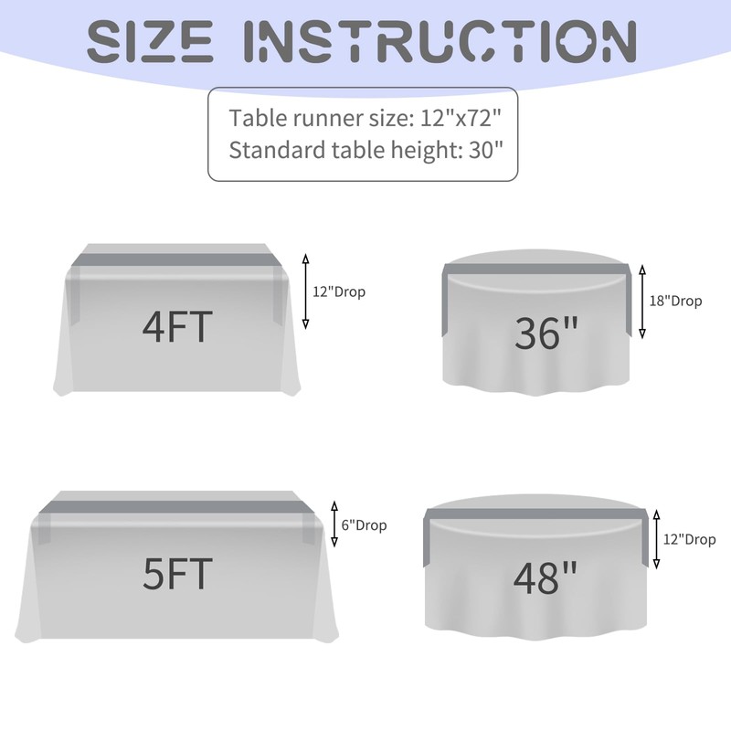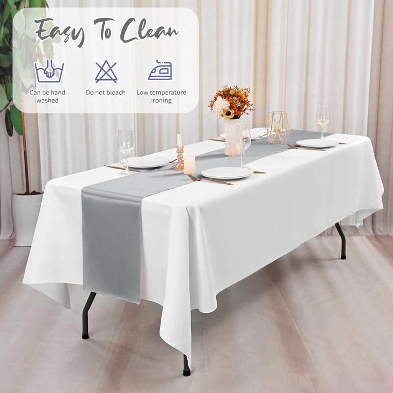 - 【Size of Table Runner】The grey table runner measures 30 x 183 cm and is suitable for a table that can seat 6-8 people. Perfect for square tables of 120-150cm and round tables of 90-120cm. This satin table runner is great for table decorations at events.