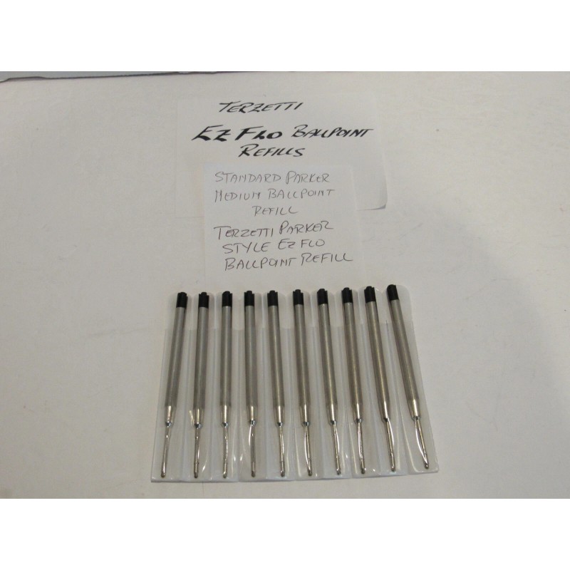 10 BLACK EzFlo BALLPOINT METAL BODY REFILLS- FIT PEN MODELS THAT USE PARKER STYLE BALLPOINT REFILLS