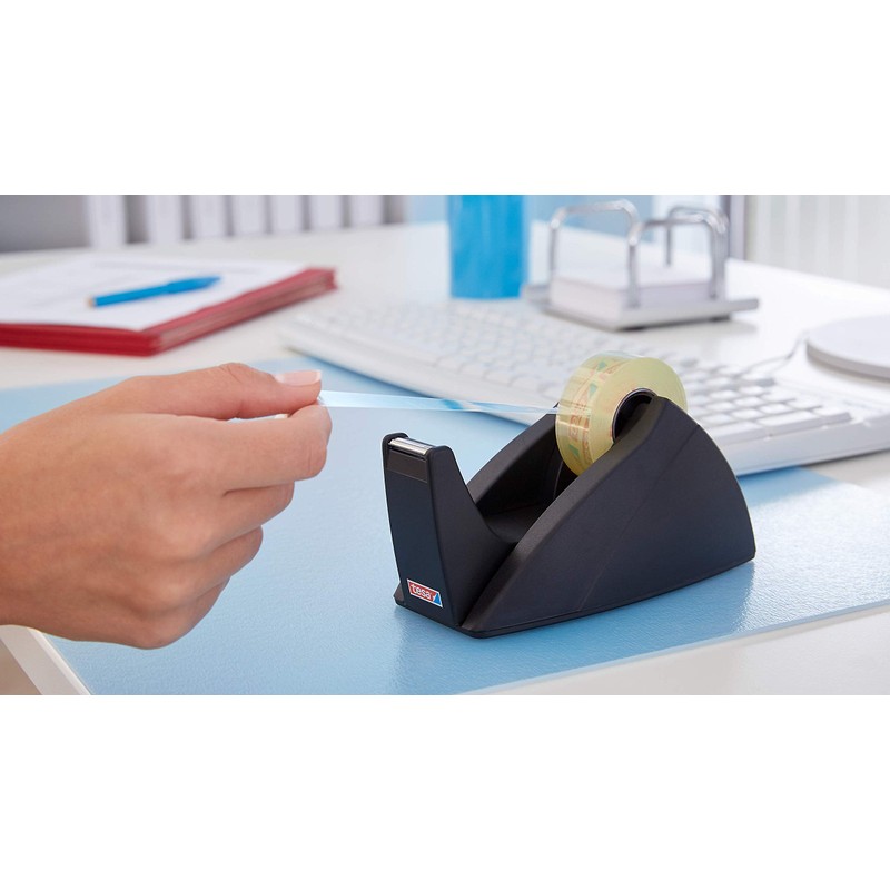 - tesa Easy cut table dispenser: durable and refillable tape dispenser with non-slip base plate for secure grip and one-handed operation