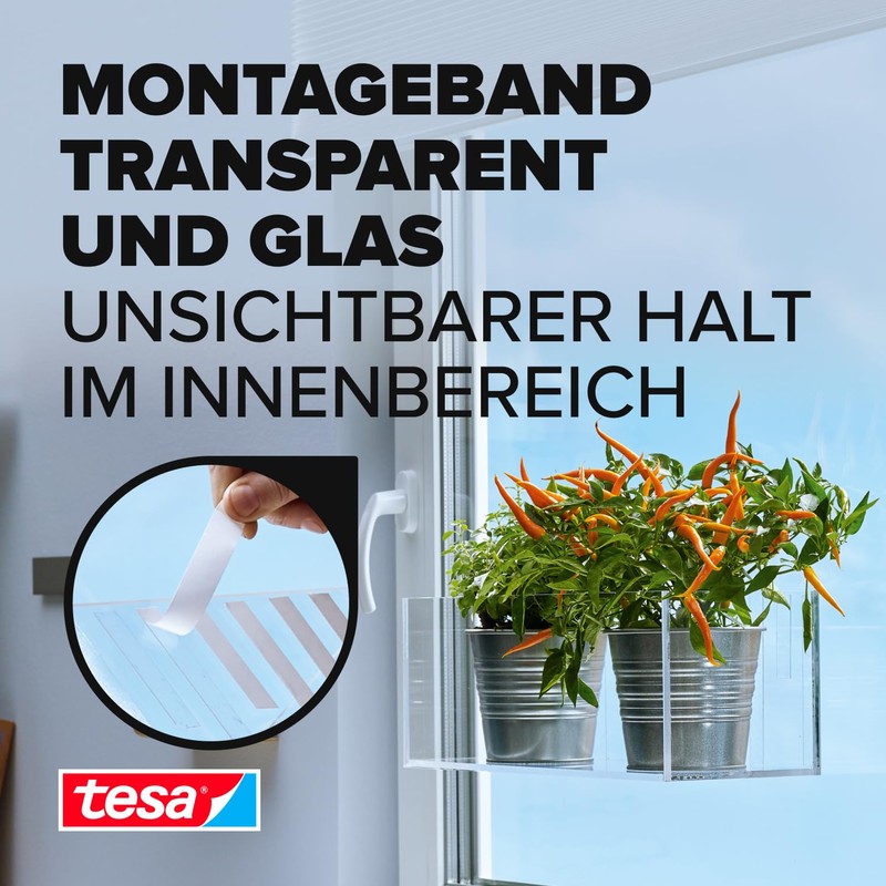 Tesa Mounting Tape for Transparent Surfaces and Glass, white, 77741-00000-00