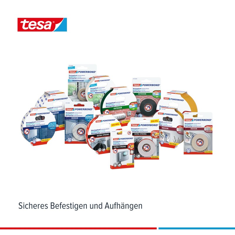 - Better sticking instead of drilling: The Powerbond Ultra Strong is the strongest mounting tape from Tesa and holds up to 6 kg – easy to assemble without drilling and tools.
