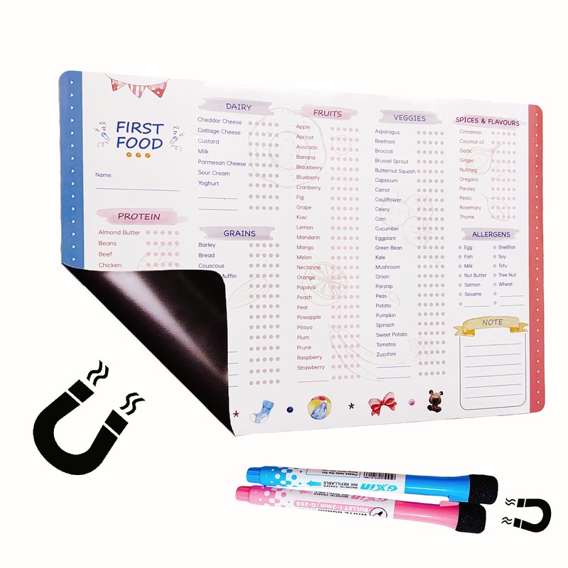 Tesitehi Baby First Foods Tracker with Fridge Magnet, Baby Food Tracker with ...