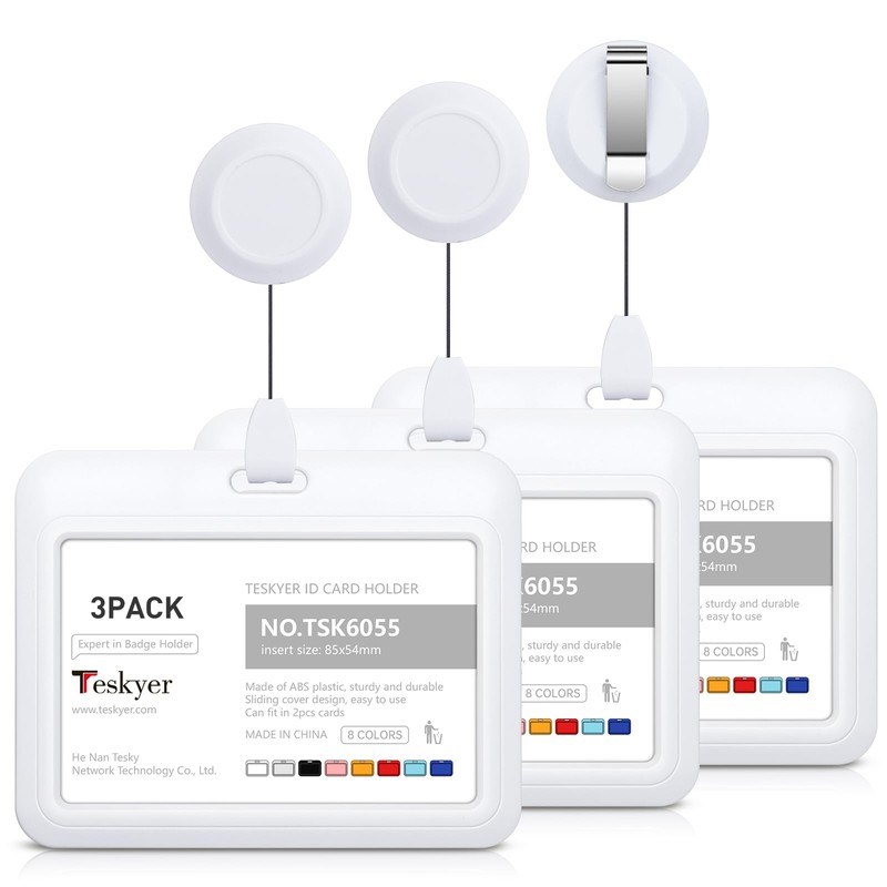 Teskyer 3 Pack Retractable Badge Holder, Retractable Keychain, ID Badge Holder, with 1 Clear Window, Hold 1 Card, for Office, Business, White
