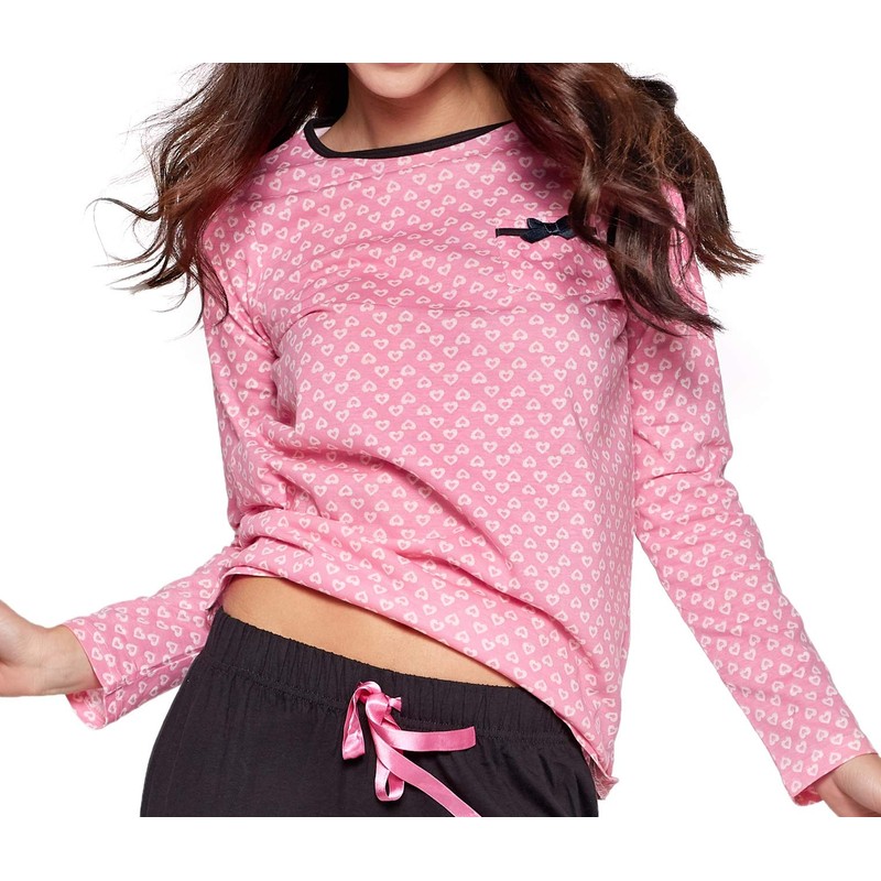 TESPOL Cute and Comfortable Ladies 100% Soft Cotton Pyjamas with Heart Pattern, pink