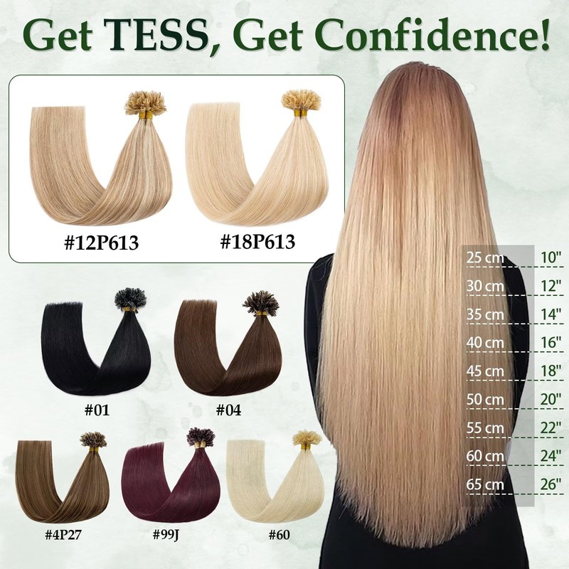 - Remy human hair: TESS human hair extensions bondings are made of 100% real human hair, which is smooth and soft. Tangle free, easy to carry. The hair extension can be washed, restyled and dyed to a darker shade.
