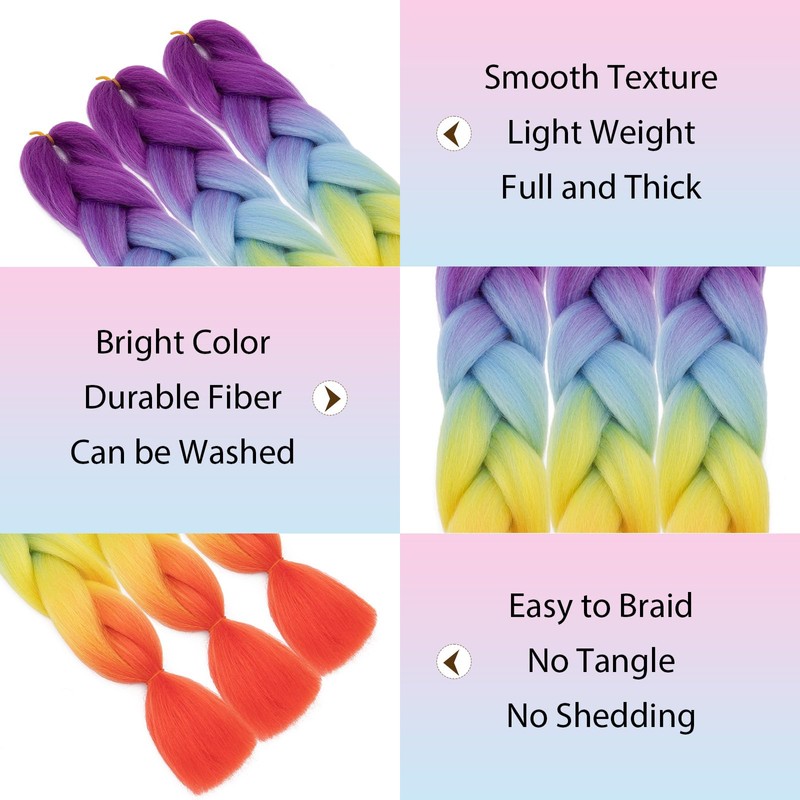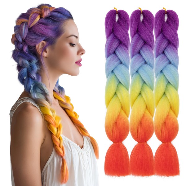 TESS Braids Extensions Gradient 60 cm, Jumbo Braids Synthetic Hair for Braiding Box Braids Hair Extension Braid 100 g/Bundle Hair Braids Extension 1 Piece Rainbow Colours