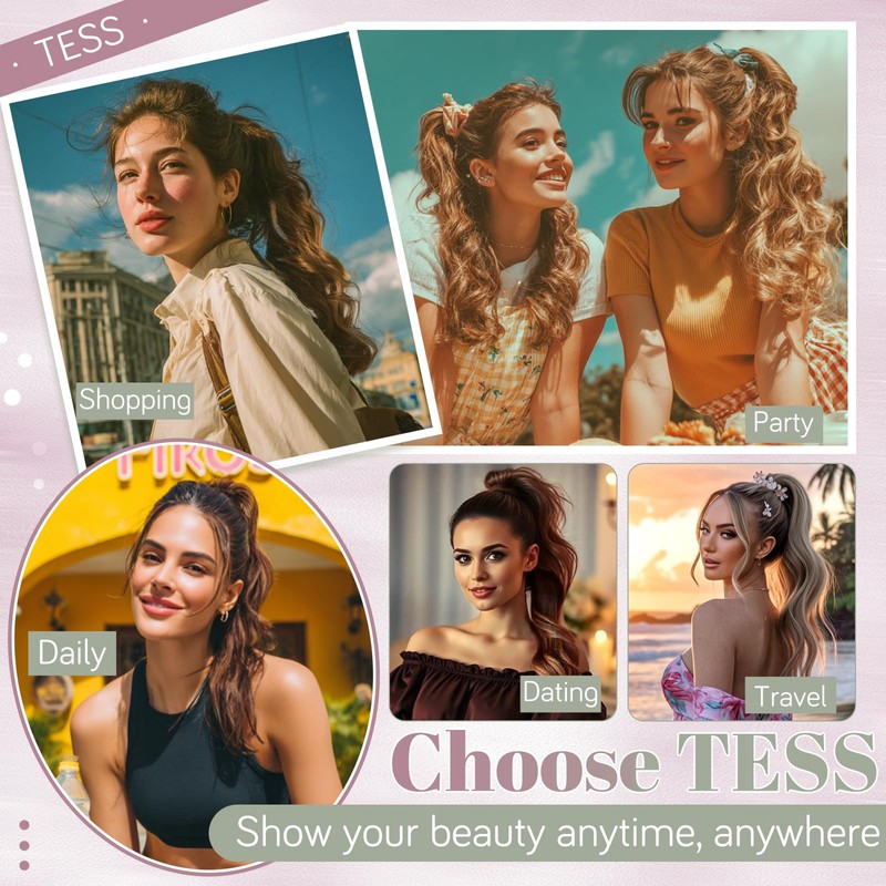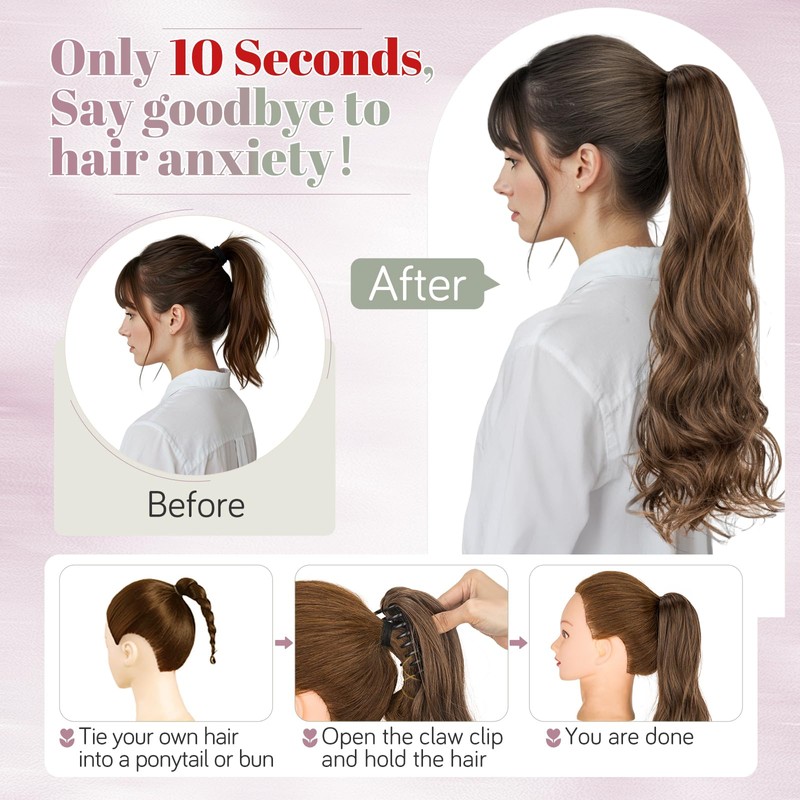 - ✿【30-Second Quick Styling】TESS claw-clip ponytail ensures a firm, non-slip hold. This one-piece clip-in design lets you attach the claw-clip ponytail to your natural ponytail in seconds. It adds natural volume for a seamless blend.