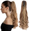 TESS Claw On Ponytail Extension Matte Material 18 Inch/45cm Curly Wavy Clip In Pony tail Synthetic Hairpiece, Dark brown With Blonde