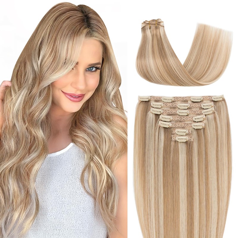 TESS Clip-In Real Hair Extensions, Remy Clip-In Extensions, #12P613 Light Bro...