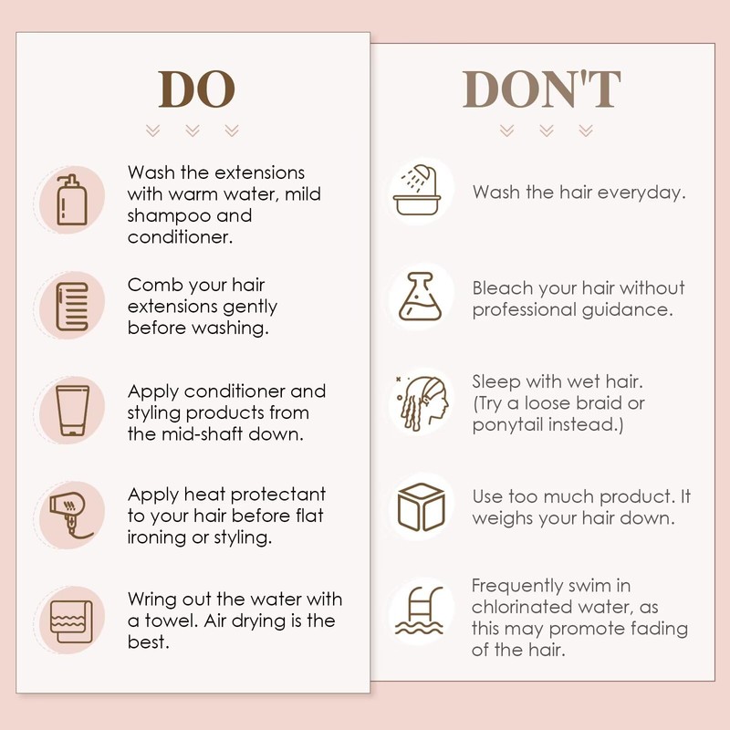 - 100% high-quality Remy human hair extensions; grade 7A; silky and soft; easy to dye, curl and straighten; won’t tangle or get dry after frequent washing.