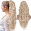 TESS Ponytail Extensions, 80 cm, Ash Blonde with Highlights, Corn Wave Braid Hair Extension Extensions with Drawstring, Long Curly Ponytail Extensions for Women
