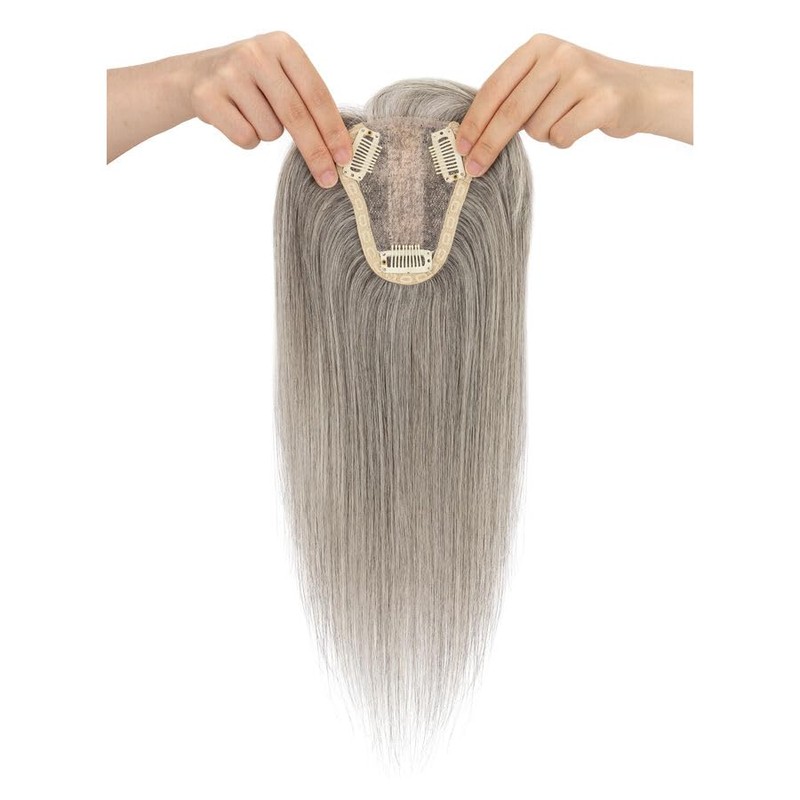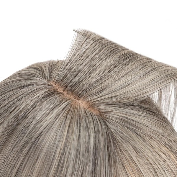 TESS Real Human Hair Topper for Women Clip In Bangs Handmade Lace Base 3 Clips Enhanced Coverage Stylish & Comfortable 8×10cm, 14 Inch, Grey