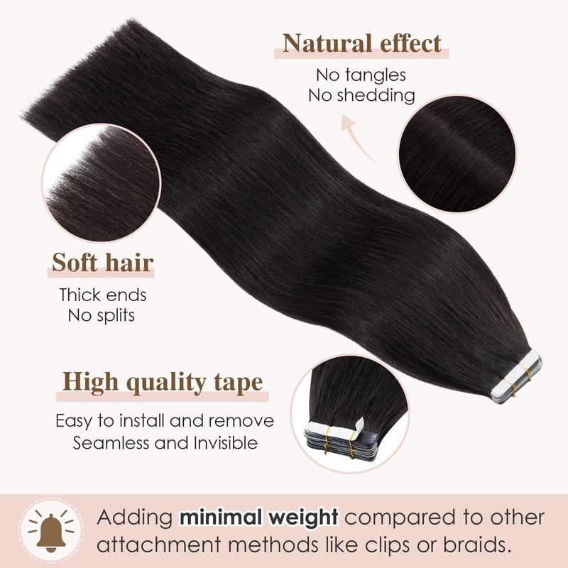 - 100% Remy human hair. These tape-in extensions made of human hair can be easily reused by adding extra tape. They are also totally invisible, giving the hair a natural look.