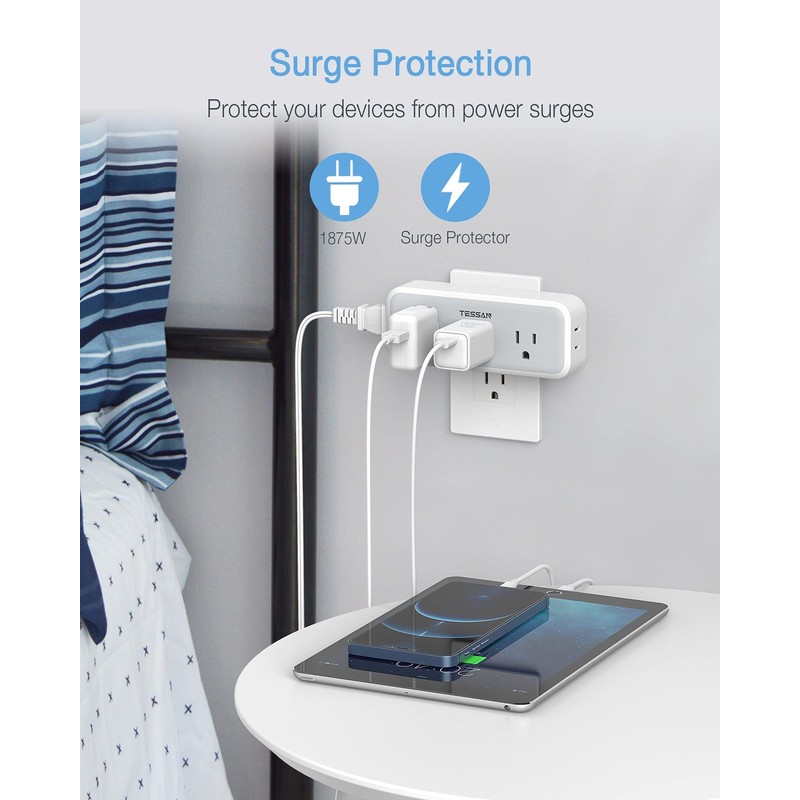 - Surge Protection: The power of the multi outlet plug ranges 125V 15A,1875W max; Wall outlet surge protector can protect your electronics from surges and spikes disturbances