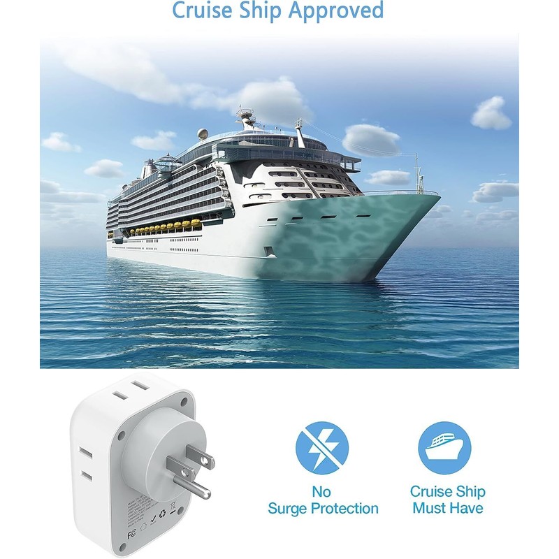 Multiple Outlet Wall Plug4 AC Outlets rated for 10A, 125V, 1250W, can easily plug all your gear onto a single outlet expander, Fit over both GFCI and standard receptacles | USB Wall charger2 USB A ports deliver charging speed up to 2.4A max; 1 USB C fast charging port up to 20W max NOTE: Fast charging when using only the USB C port | Cruise Accessories HavesCruise ships don't allow power strips with surge protection and extension cords. Most ship cabins have limited outlets available and no USB ports | Suitable for Any OccasionsOutlet splitter can be used in any indoor place with socket, especially for the bedroom, bathroom, college dorm room and hotel |