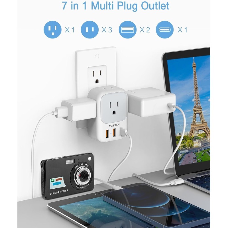 7 in 1 Wall Outlet Extender TESSAN 20W USB C Wall Charger