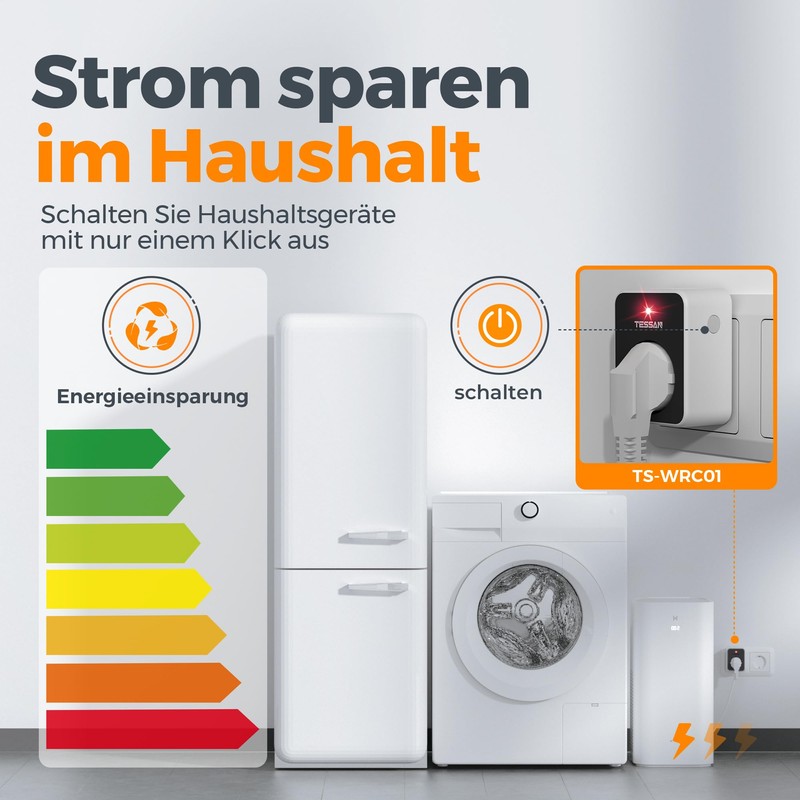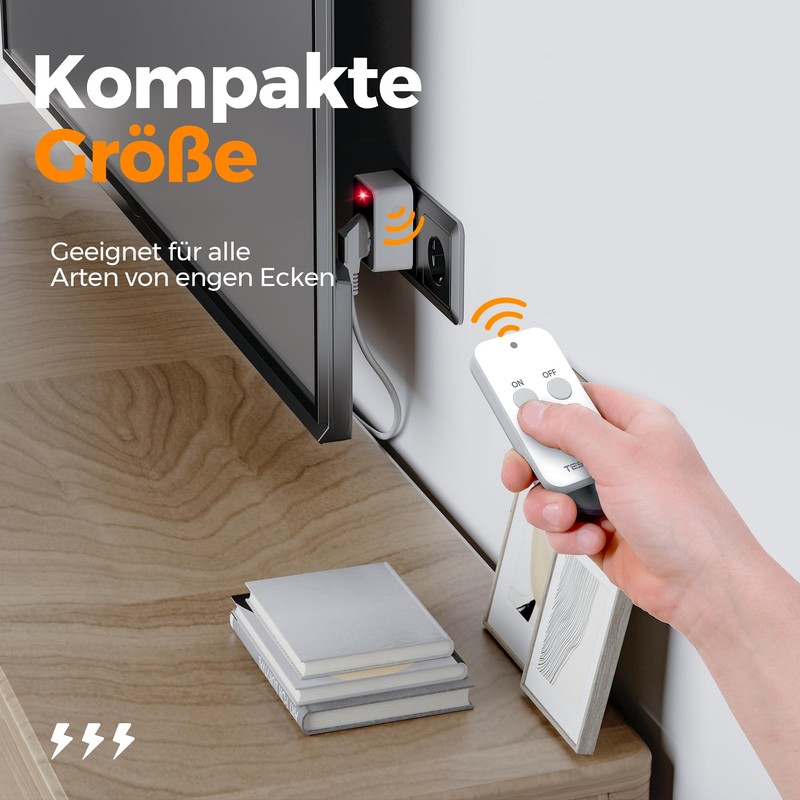 - Energy saving: the socket remote control is compatible with a wide range of devices (3600 W) and allows easy control of lamps, TVs and fans; low standby power consumption contributes to energy saving