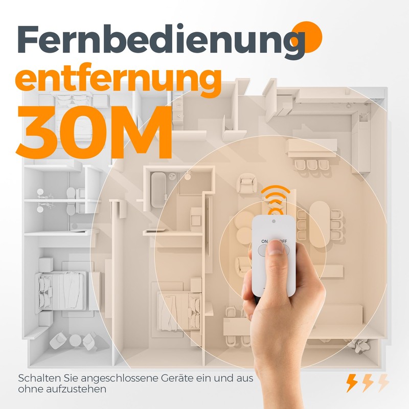 - 30.5 m RF range: the signal range of the socket with remote control is 30.5 m, so you can quickly turn household appliances on or off with one click without getting up. Radio sockets with remote control inside are suitable for use in living rooms, bedrooms and other areas