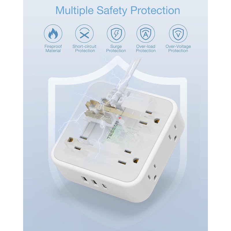 - Multicontacto USB C: Los puertos duales USB A pueden cargar hasta 2.4 A, y el puerto USB C puede cargar hasta 3 A; Ideal para teléfono celular, tablet, banco de energía, portátil, auricular, etc; Nota: todos los puertos USB de salida: 5 V/3 A, 15 W max