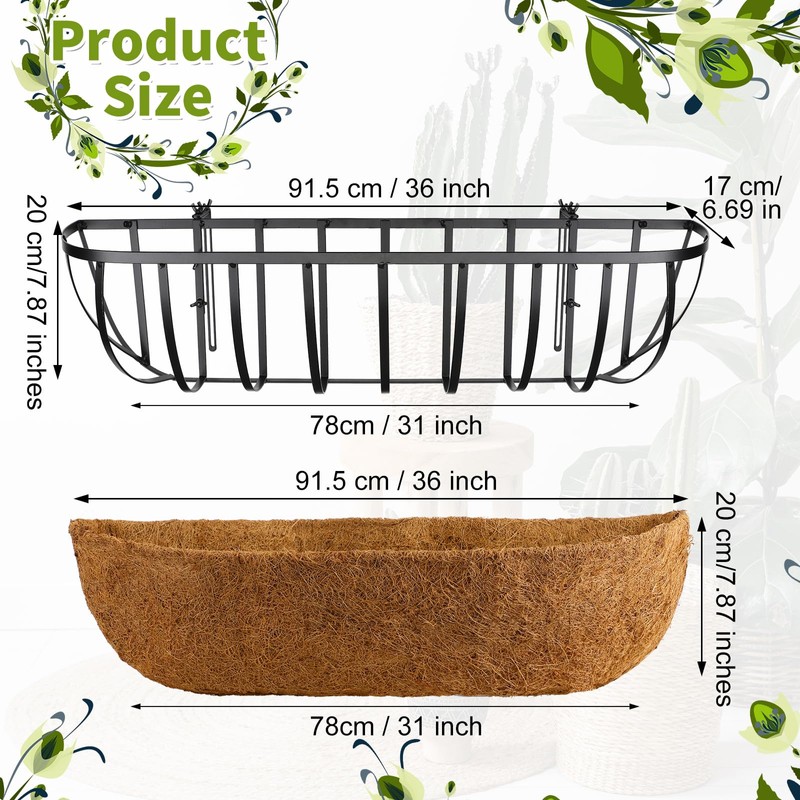 - Quality Material: window boxes horse trough are made of metal and coconut shell; The coconut liner is made of quality natural latex and natural coconut fiber, which has a thick texture and retains the moisture of the roots well; The floral black frame and base are made of sturdy rust resistant metal that won't fall easily; The nice combination of colors and materials can create a beautiful window scenery for you