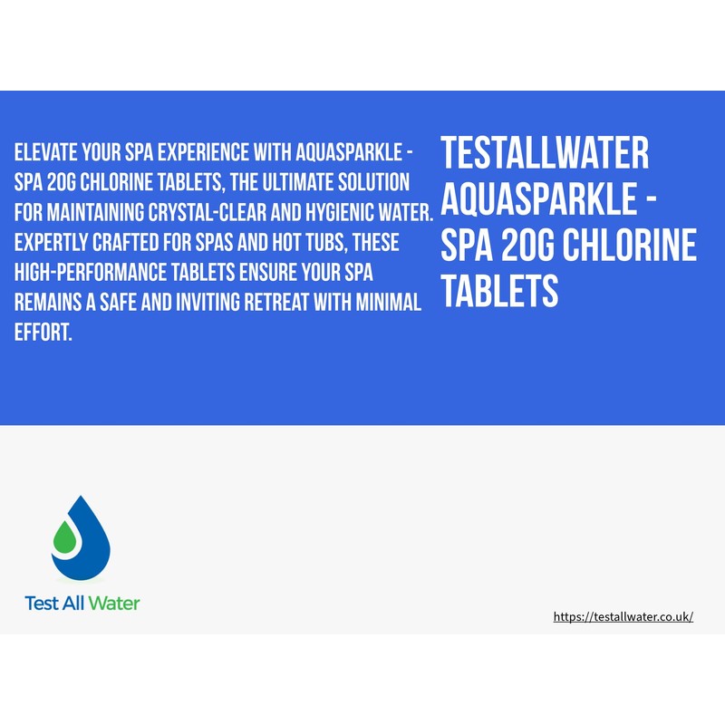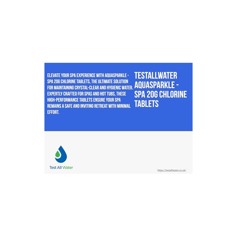 Testallwater - AquaSPArkle Spa Chlorine Tablets 20g | Enhanced Chlorine Formula | Sunlight Stabilised | Ideal for Floating Dispensers | Alternative to Bromine Tablets for Hot Tubs