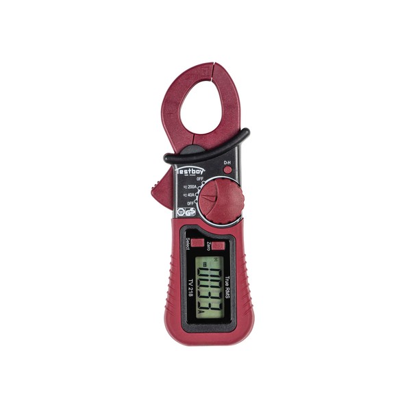 Testboy TV 218 Miniature Digital Clamp Ammeter (Ultra Compact Design, True RMS, Data Hold, Current Measurement 200A AC/DC, Auto Power-Off) Red/Black